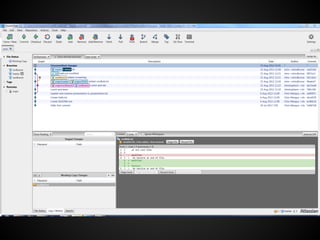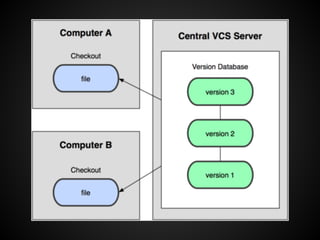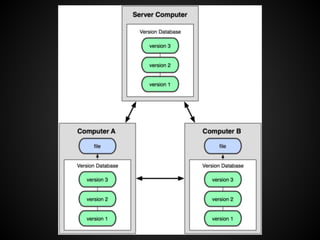 Git is a version control system that allows developers to track changes to files over time. It provides benefits like being able to save older versions of files, review past changes, and revert to older versions. Git is a distributed version control system that is open source and designed for speed. It was created by Linus Torvalds to keep up with development of the Linux kernel. Git has advantages over other version control systems like Subversion (SVN) in being able to work offline and having faster performance and easier branching workflows. Basic Git commands and workflows can be used through the command line or graphical tools like Git GUI and SourceTree.