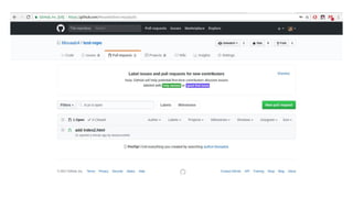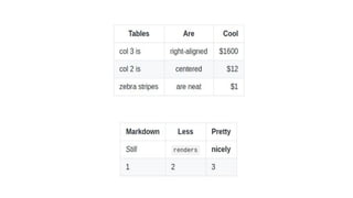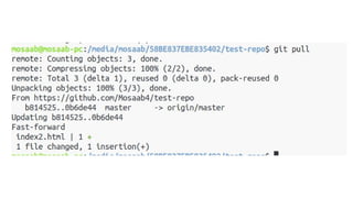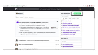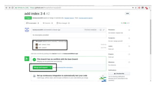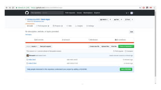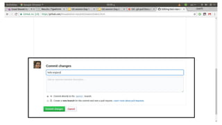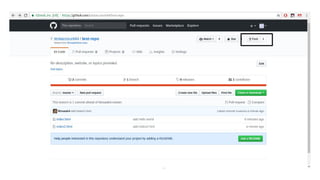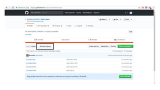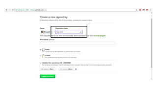 This document provides an introduction to Git and GitHub. It discusses what GitHub is and how it relates to Git. It then covers how to perform common Git and GitHub tasks like creating a repository, pushing and pulling changes, forking repositories, and making pull requests. The document also includes sections on Markdown formatting and resources for learning more about Git and GitHub.