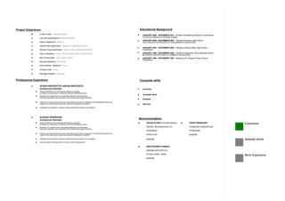 This document contains details about Gitau John's experience and qualifications as an architect. It includes a list of projects he has worked on at previous jobs. It also outlines his educational background, including diplomas in architecture. Contact details and recommendations from previous employers are provided at the end.