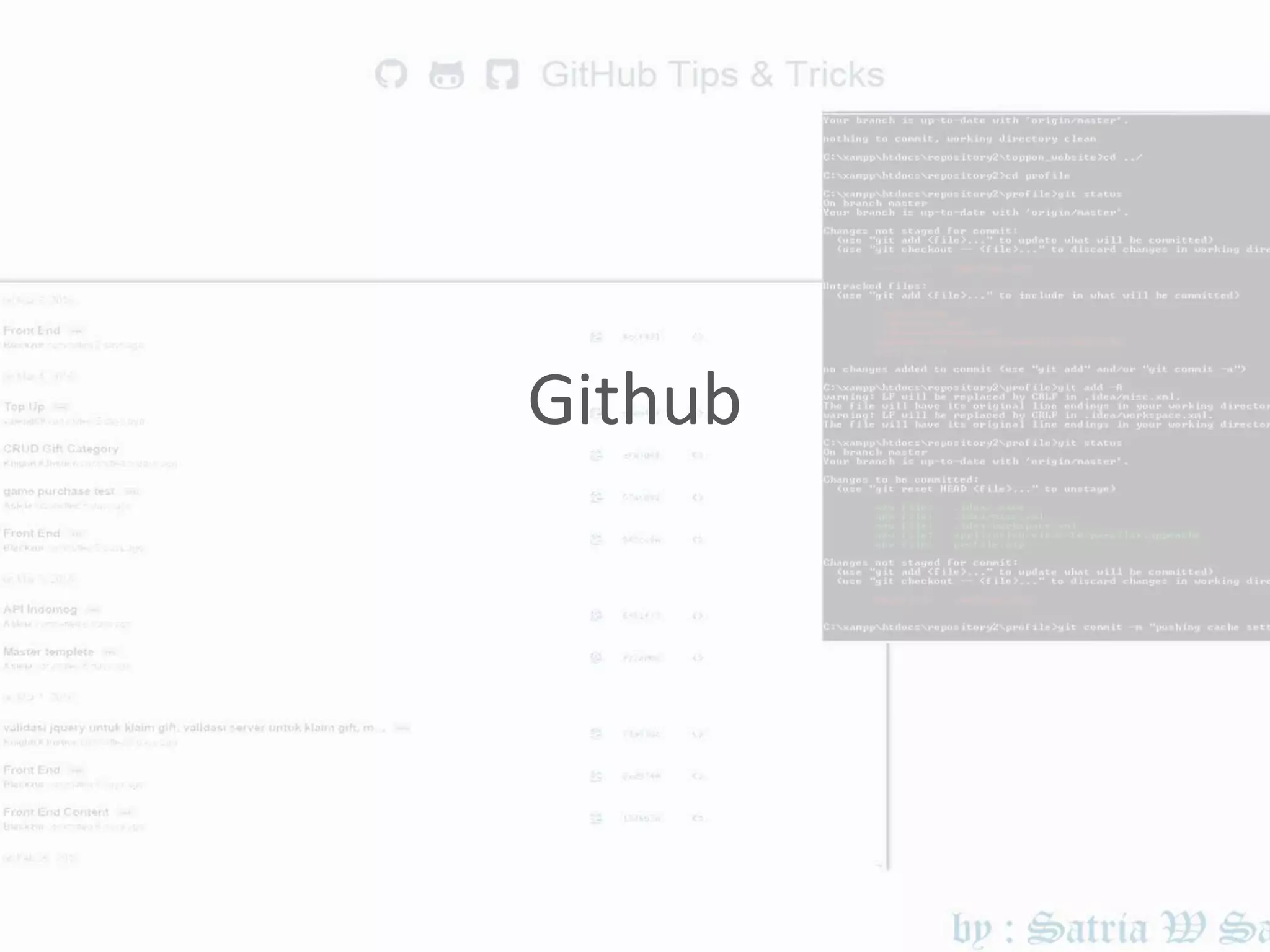 Dokumen ini menjelaskan penggunaan Git dan GitHub sebagai alat pengendali versi dan manajemen repository. Terdapat penjelasan tentang cara membuat, mengelola, dan berkolaborasi dalam project menggunakan perintah Git di command line dan antarmuka pengguna. Juga diuraikan langkah-langkah untuk menangani konflik yang mungkin muncul selama kolaborasi.