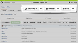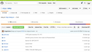 오픈소스 강의 자료 및 링크 모음 3. GITHUB & GIT & Code Review http://hl1itj.tistory.com/118 • OKdevTV.com • 발표자료 http://www.slideshare.net/kenu/github-branch-branch-strategy