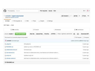 This document provides an introduction to Git and GitHub. It begins with an overview of source control and the history of version control systems like SVN and CVS. It then discusses key Git concepts like its three-tree architecture, branches and merging, and undoing changes. The document concludes with an introduction to GitHub, including how to clone repositories, collaborate through pull requests, and link a local Git repository to a remote GitHub repository.