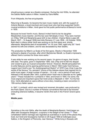 Giuseppe Verdi was an influential Italian Romantic composer known primarily for his operas. Some of his most famous operas include Rigoletto, La traviata, Aida, and Otello. He was one of the most important composers of the 19th century and helped shape the genre of opera. Verdi also composed sacred works like his Requiem Mass. Throughout his career, he refined his musical style and tackled new dramatic themes. Verdi is seen as an emblematic figure of Italian unification and his music took on nationalistic themes that resonated with audiences.