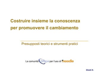 Il documento esplora l'evoluzione delle teorie dell'apprendimento, analizzando modelli come il comportamentismo, il cognitivismo e il costruttivismo. Si sottolinea l'importanza dell'apprendimento cooperativo e delle comunità di pratica per costruire conoscenza condivisa e promuovere il cambiamento. Viene infine presentato Moodle come ambiente di apprendimento virtuale che supporta l'interazione e la cooperazione tra gli studenti.