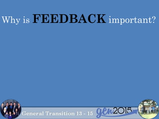 Feedback is important to improve performance, foster openness, and develop others, but many people do not give feedback due to fear. As a leader, you must model giving feedback focused on increasing results through a clear process while maintaining relationships.
