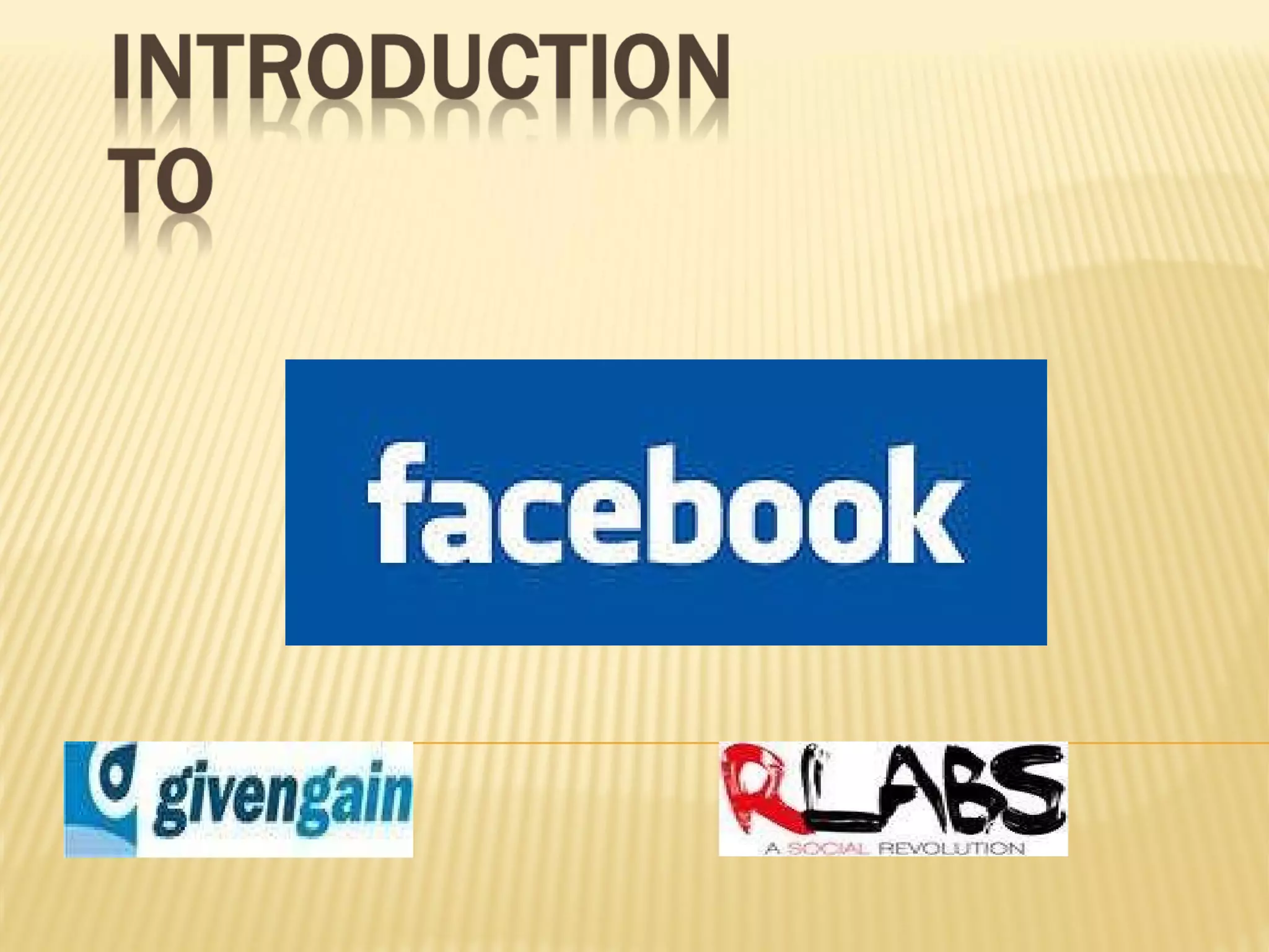 Facebook is the largest social networking site with over 500 million active users. Users can connect with friends, share photos and videos, and access Facebook through mobile devices. While originally focused on college students, its fastest growing demographic is now users over 35 years old. Facebook provides opportunities for organizations to create pages to connect with customers and promote their brand.