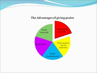 Praise is more effective than criticism for motivating people. Specifically praising good behavior with examples can encourage more of that behavior. In conclusion, catching more flies with honey means using praise rather than criticism.