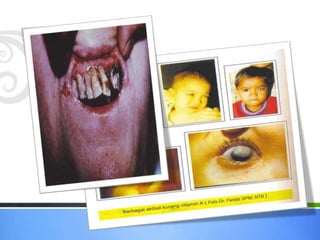 Dokumen ini menjelaskan tentang berbagai zat gizi yang dibutuhkan tubuh, termasuk karbohidrat, protein, lemak, vitamin, mineral, dan air. Setiap zat gizi memiliki fungsi, sumber, dan dampak kekurangan yang berbeda, serta penting untuk kesehatan dan reproduksi. Saran juga diberikan mengenai pemilihan makanan yang sehat dan seimbang untuk mendukung kesuburan.