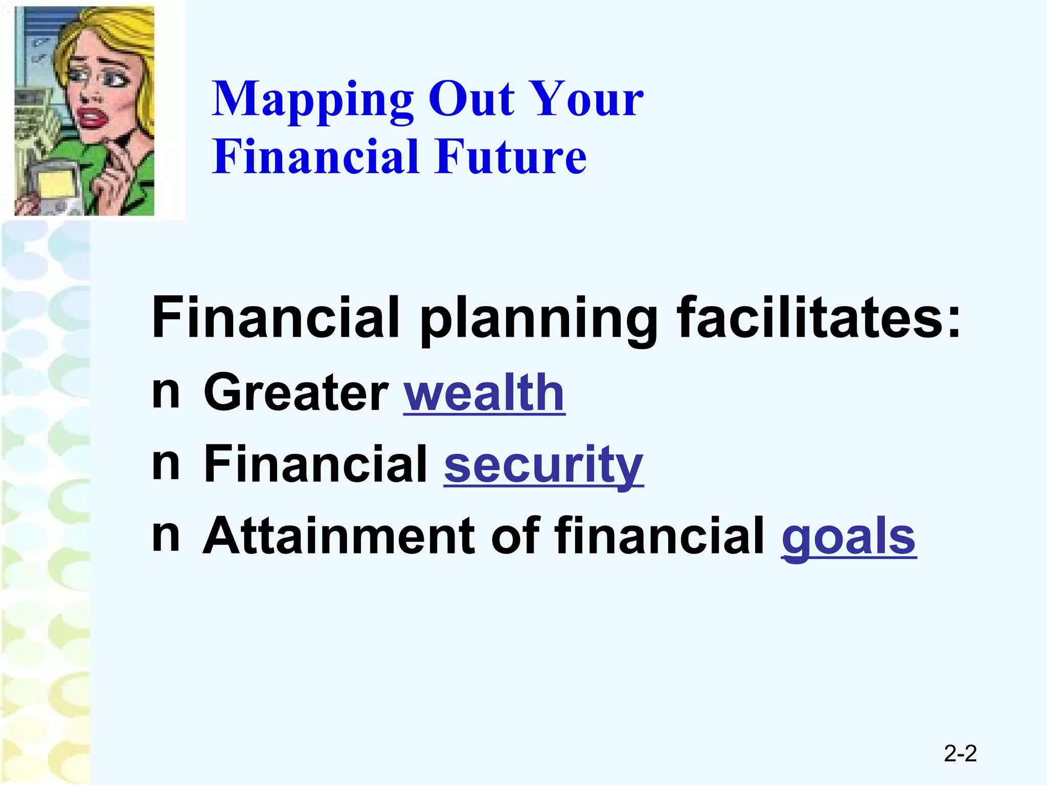 The document discusses various financial planning tools such as financial statements, budgets, and time value of money calculations. It describes balance sheets, income/expense statements, and how they are used to track financial progress over time. Ratio analysis of these statements allows people to evaluate their financial performance and progress toward goals. Budgets are presented as a way to help achieve short-term financial goals and monitor expenses.