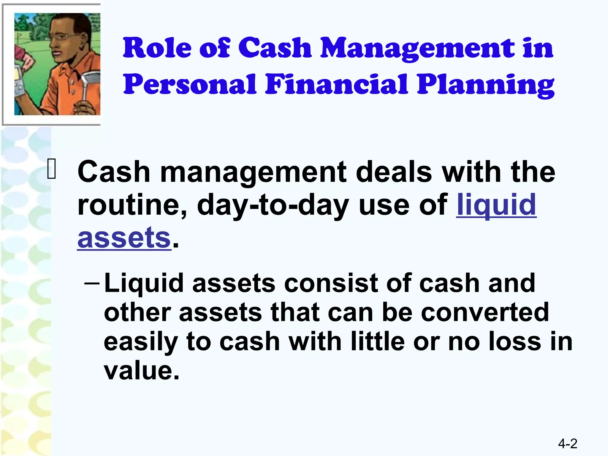 This document discusses cash management and savings options. It begins by defining cash management and listing examples of liquid assets. It then outlines the various types of financial institutions like banks, credit unions, and internet banks. The document also discusses cash management products like checking and savings accounts, money market funds, and electronic banking services. Finally, it covers ways to establish a savings program and the variety of savings vehicles available, such as CDs, Treasury bills, and savings bonds.