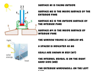 This document provides information about insulated glass units (IGUs). It discusses that IGUs consist of multiple glass panes hermetically sealed with dry air or inert gas between. Key components of IGUs include spacers to separate the glass, desiccants to absorb moisture, and primary and secondary sealants. The document also outlines best practices for IGU production, including using the proper desiccant type and filling method, minimizing spacer joints, and controlling the production environment. Production steps and specifications for IGU properties are defined.