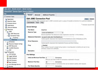 GlassFish Server 3.1 is the latest version of the GlassFish open source application server. It provides Java EE 6 compatibility, improved performance over previous versions, and new features like high availability clustering and modular extensibility using OSGi. Future versions will continue focusing on developer productivity, manageability, and hybrid OSGi/Java EE applications.