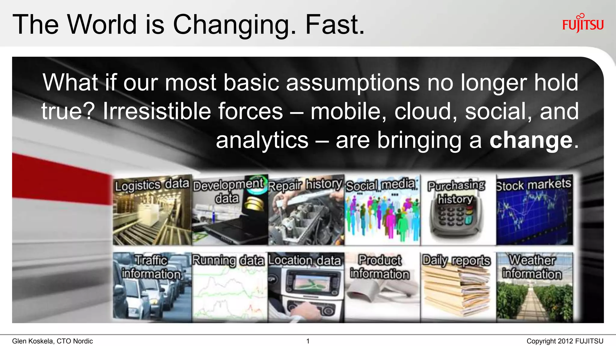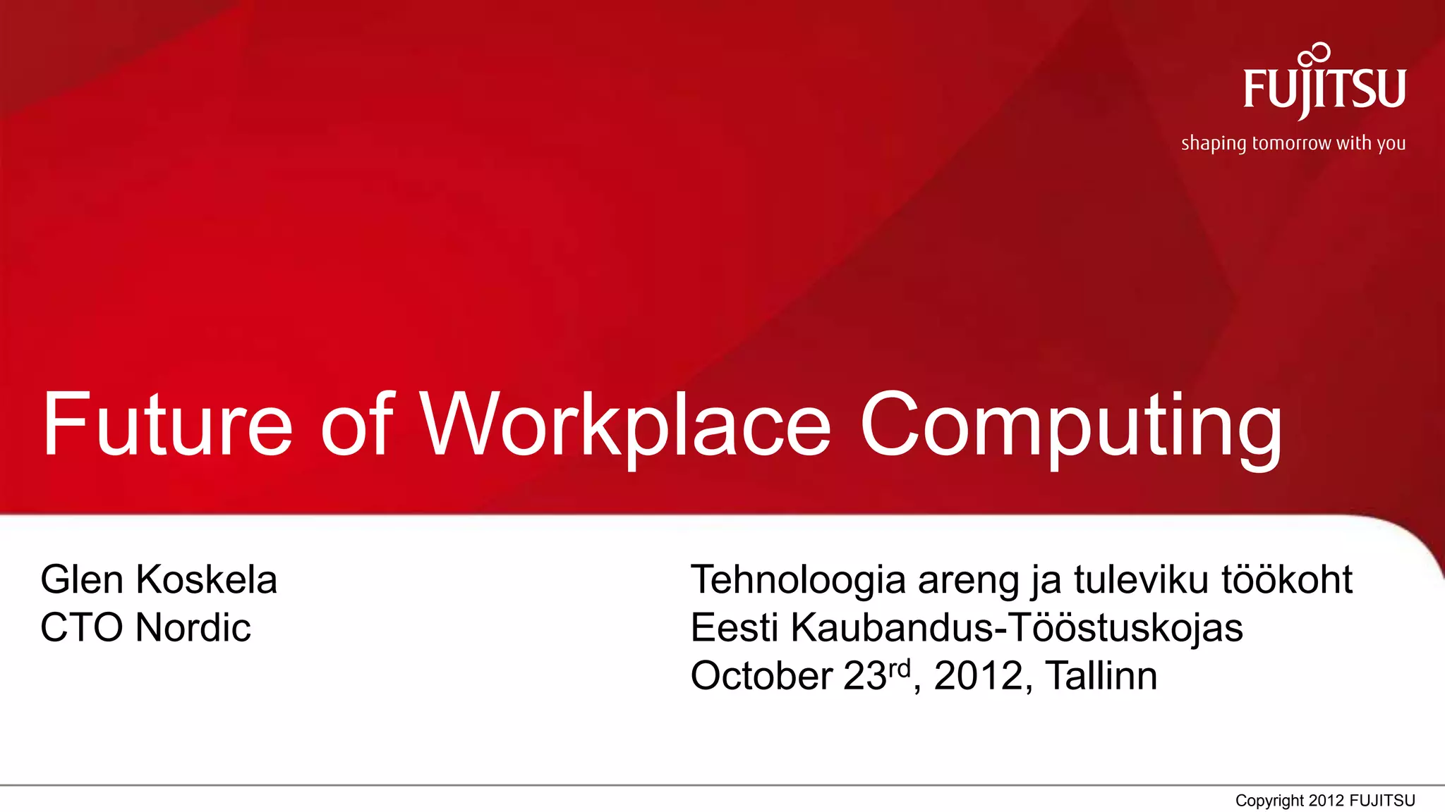 The document discusses the transformative impact of technology on workplace computing, emphasizing the shift from traditional IT processes to user-driven, collaborative environments shaped by mobile, cloud, social, and analytics. It highlights the growing consumerization of IT and the importance of adapting to changing user expectations and behaviors to drive productivity. Ultimately, it calls for a re-evaluation of IT's role to focus on enabling meaningful work through flexible, context-driven technology solutions.