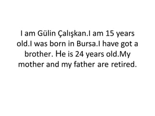 Gülin Çalışkan is a 15-year-old girl from Bursa, Turkey who has a 24-year-old brother. She enjoys drinking cola and coffee, loves cats and photography, and likes to spend time with friends. Her goal is to become an English teacher.