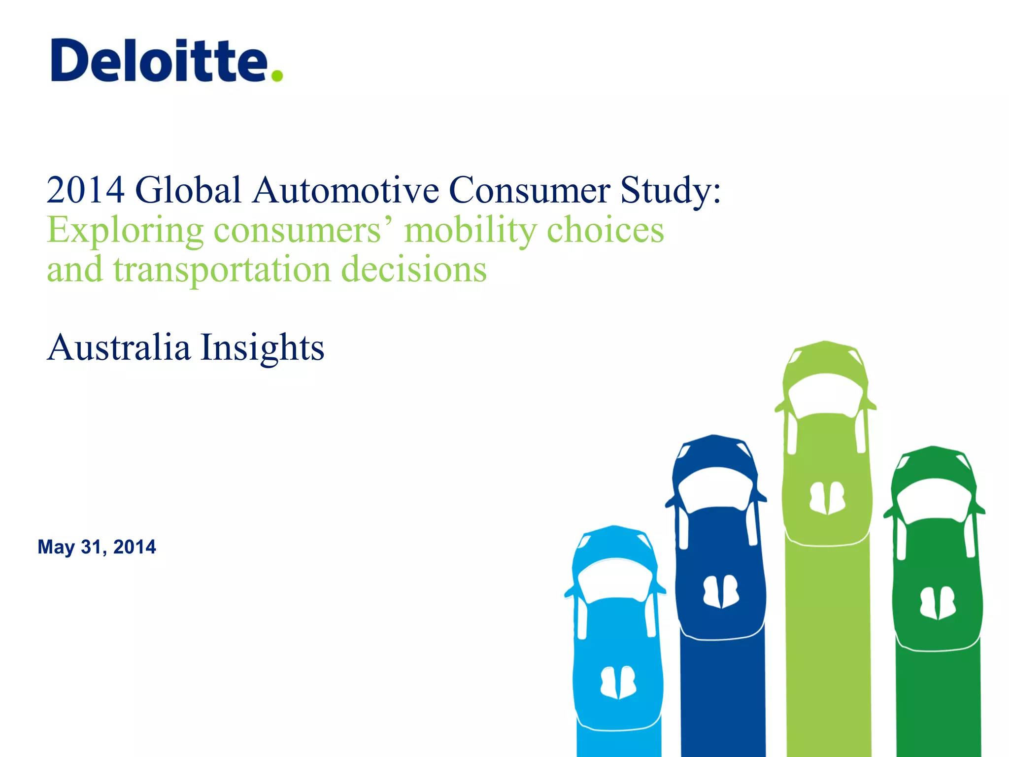The 2014 Global Automotive Consumer Study for Australia examines how mobility choices are changing due to trends such as urbanization, generational differences, and emerging technologies. It highlights Gen Y's distinct preferences, including a strong interest in alternative powertrains and connectivity, while expressing concerns over costs and convenience in vehicle ownership. The study suggests significant opportunities and challenges for automotive manufacturers as consumer behavior evolves, particularly among younger generations who are less devoted to traditional car ownership and more inclined towards shared mobility solutions.