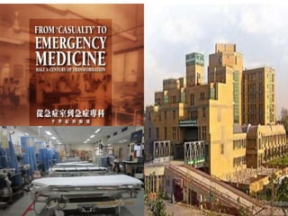 The document discusses challenges in establishing academic emergency medicine and trauma care models in India. It outlines the current status of emergency care, which faces issues like lack of standardized training and infrastructure. It also summarizes efforts taken to advance academic emergency medicine in India, such as fellowship programs and the establishment of academic societies and journals. However, challenges remain around lack of consensus on training programs and specialty recognition. The document advocates for developing an indigenous academic model and increasing leadership and collaboration to strengthen emergency and trauma care systems in India.