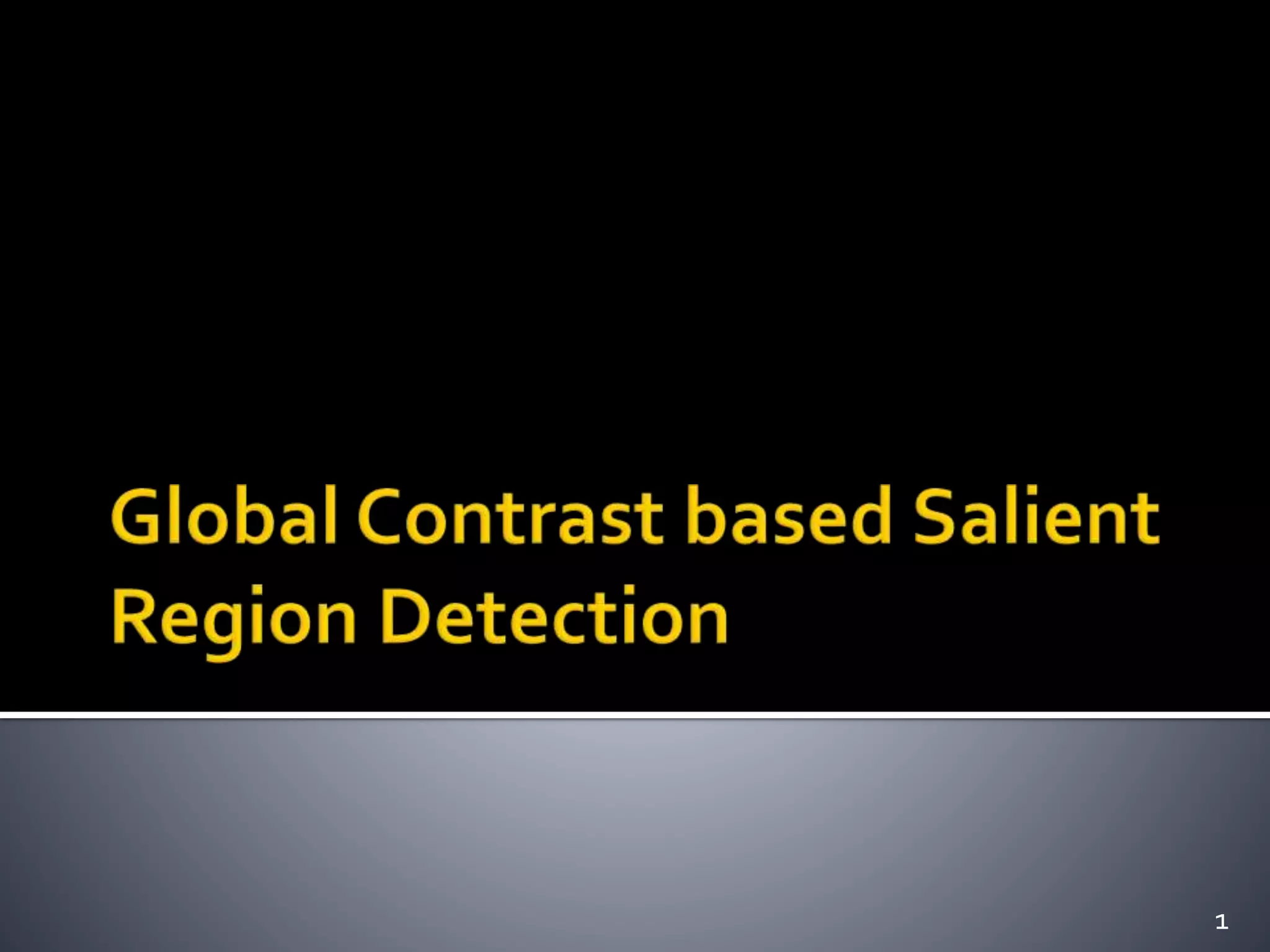 This document proposes a regional contrast based saliency extraction algorithm that separates objects from their surroundings and assigns comparable saliency values within objects. It quantizes color channels to reduce complexity while preserving most frequent colors. Segmentation is performed and saliency values are calculated based on regional color distances and spatial weights. The algorithm achieves state-of-the-art precision and recall rates for extracting salient objects from natural images.