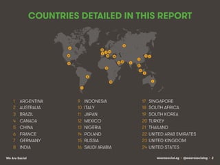 This document is a report from We Are Social that provides global and regional statistics on digital trends as of January 2014. Some key findings include: there were over 2 billion internet users worldwide in 2014 representing 35% internet penetration globally; nearly 1.9 billion people actively used social media accounting for 26% of the world's population; and over 6.5 billion mobile subscriptions amounted to a 93% mobile penetration rate worldwide. The report also analyzes and compares regional data on internet, social media, and mobile connectivity.