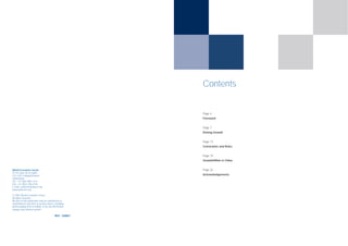 The document is a report from the World Economic Forum that examines global risks that could impact continued economic growth. It identifies 23 core global risks based on their likelihood and potential economic severity. It was prepared by the Forum's Global Risk Network, which aims to identify risks, alert decision-makers, and help mitigate threats at global, regional, industry and company levels. The report was produced for the Forum's 2007 Annual Meeting in China to consider drivers of recent growth and challenges for continued expansion over the next decade.