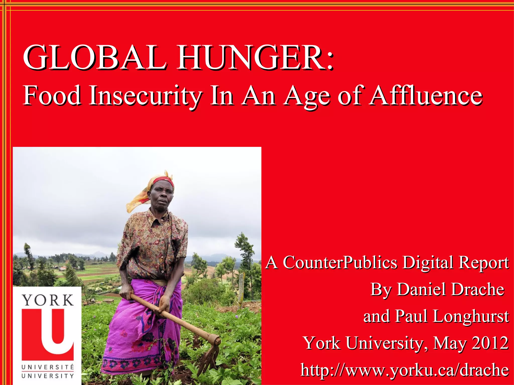 Global hunger persists despite record crop yields and globalized food systems. Several key factors contribute to this, including rising food and oil prices, diversion of crops to biofuels, and commodity speculation. Alternative approaches like food sovereignty promote small-scale sustainable agriculture and food as a human right. While humanitarian aid is essential, long term solutions require policy reform, addressing land grabs, and grassroots food justice movements in both the global North and South.