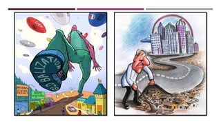 The document discusses the global interstate system and the effects of globalization. It defines key terms like state, interstate, and economic sovereignty. It also examines the rise of neoliberalism and how it prioritizes market exchanges. Globalization impacts local governments by influencing policies, affecting jobs and property values. While international agreements like the Montreal Protocol show cooperation is possible, local governments face dilemmas balancing economic and social concerns with pressures from powerful corporations. A global network of states and non-state actors now governs issues that transcend national borders, including organizations like the UN, World Bank, IMF, and WTO.