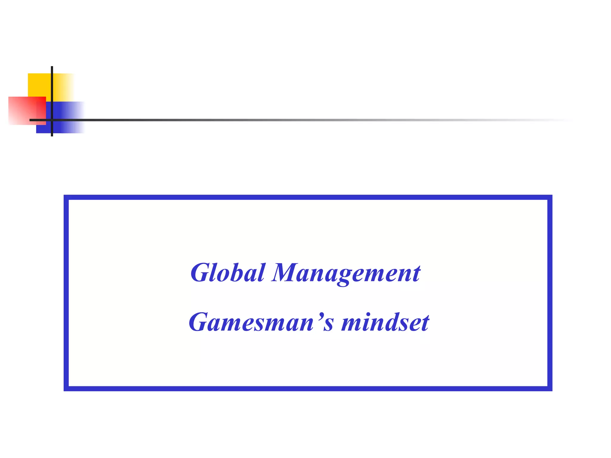 The document discusses the need for companies entering the global arena to adopt a "gamesman's mindset" to counter attacks from transnational competitors. It describes global competition as brutal, complex, and dirty. Transnational companies deploy multi-country, multi-product strategies to prevent emerging competitors from gaining market share. To compete effectively, companies should understand which firms they are competing against globally, what their competitors are fighting for in different markets, and that competitors are also fallible. The document outlines several competitive strategies ("CSI strategies") companies can employ, such as direct attacks, focusing on niche areas, exploiting underserved segments, diverting competitors' attention, and extracting profits from declining markets. Adopting a gamesman's mindset