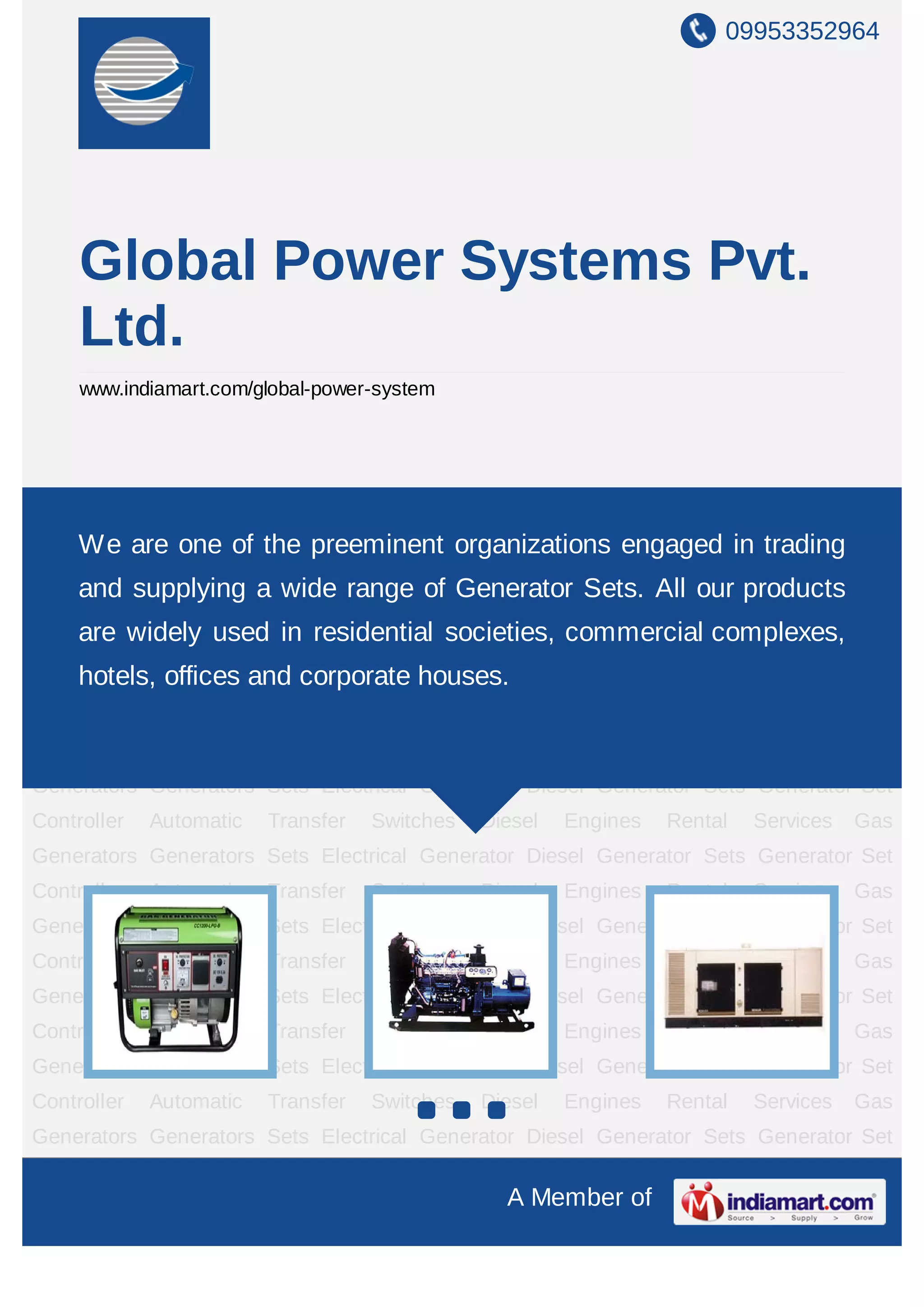 Global Power Systems Pvt. Ltd., established in 2002, is an authorized distributor of Kohler diesel generators and related equipment, serving various sectors including residential, commercial, and industrial applications. The company features a wide range of generator sets produced in Maharashtra, India, adhering to stringent manufacturing norms and promising reliability and fuel efficiency. With a focus on quality and customer service, Global Power Systems also offers rental services and has received multiple accolades for its performance in the industry.