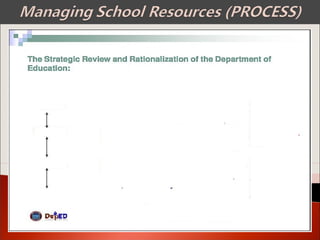 The document outlines the profile and expertise of Timothy Wooi, an international educational leadership trainer specializing in lean management and school resource management. It discusses the importance of school-based management (SBM) in the Philippine education system, highlighting how it decentralizes decision-making and enhances community involvement to improve student outcomes. Additionally, it describes practical guides and methodologies for new principals to manage resources effectively and foster collaboration among internal and external stakeholders for school improvement.