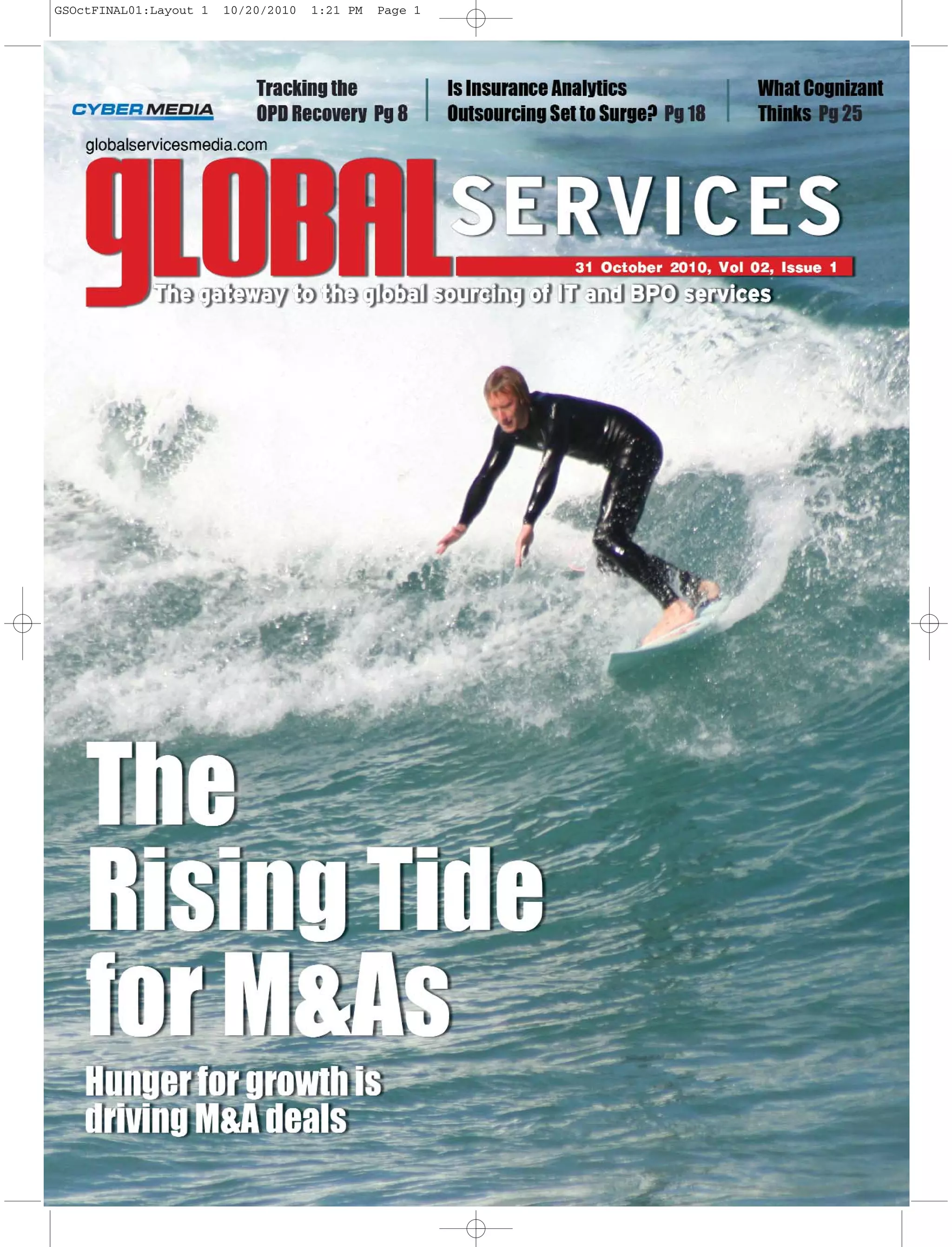 The document discusses Global Services Media's integrated media platform that connects the technology and business processing services industry. It highlights various offerings like webinars, research reports, and a digital magazine, while also discussing industry trends such as M&A activities driven by the need for market share and the evolution of outsourced product development in response to post-recession dynamics. The document emphasizes the importance of targeting mid-sized companies for growth and adapting to changing market demands, particularly in software and BPO sectors.