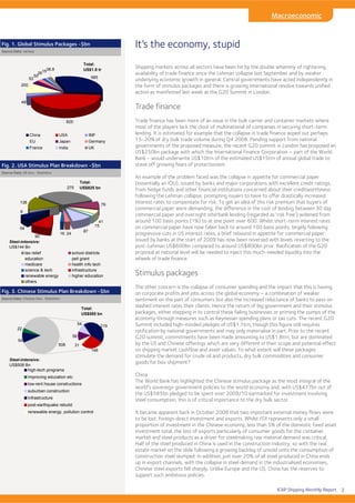 1) Shipping markets have been hit by tightening trade finance and weaker economic growth. Central governments have enacted stimulus packages to varying effect, with China's package most integral due to its focus on infrastructure and steel consumption.