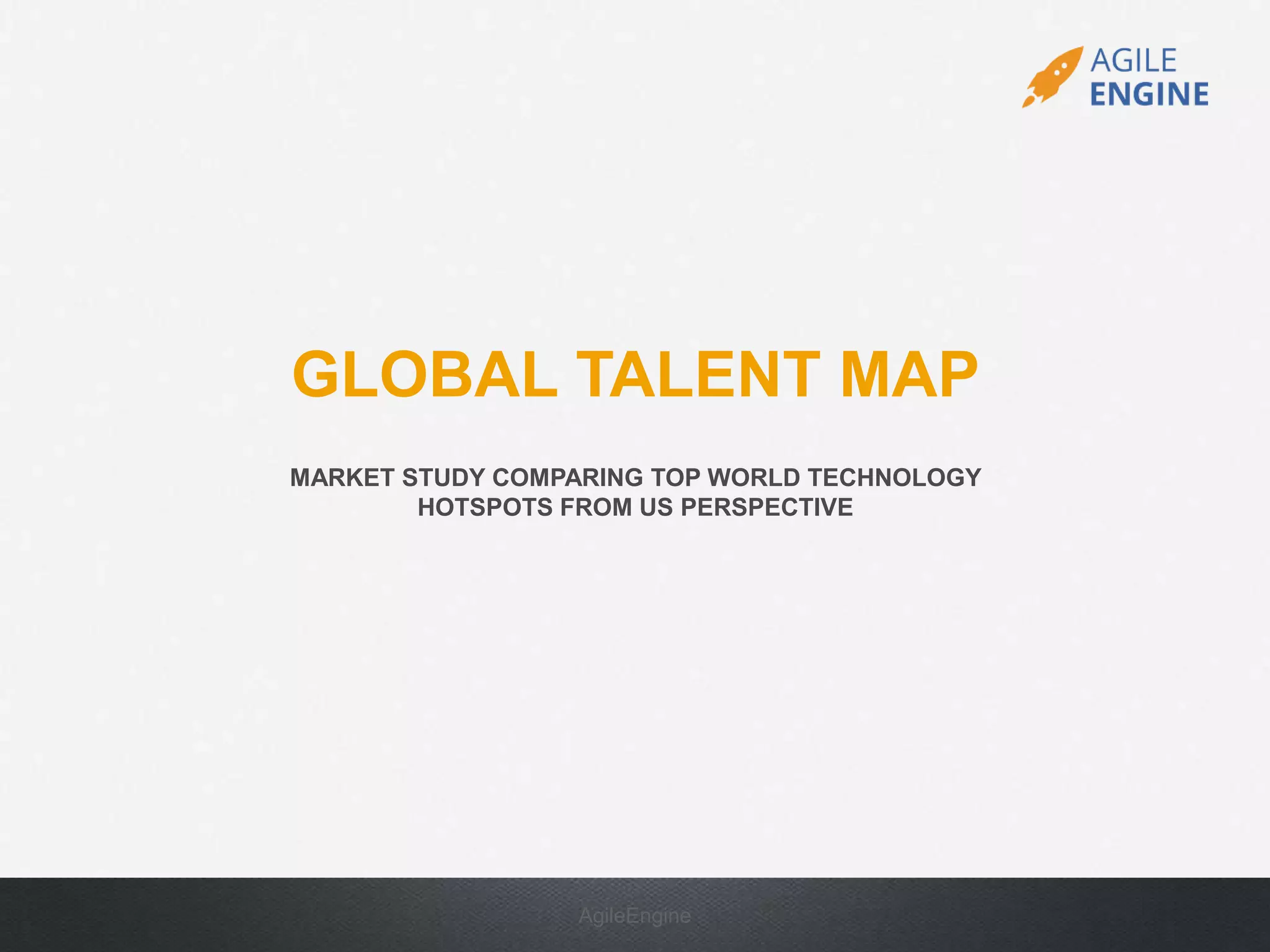 The document discusses the global talent map and outsourcing trends in the technology sector, highlighting the challenges U.S. companies face in hiring senior developers and the rising costs of local talent. It presents various regions—such as Latin America, Eastern Europe, and Asia—as potential outsourcing locations, each with unique advantages and disadvantages in terms of costs, skill availability, and cultural compatibility. The analysis includes metrics like education quality, attrition rates, and time zone differences to help companies navigate their outsourcing decisions.