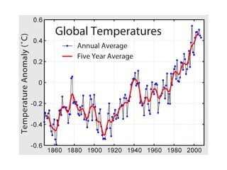 The document discusses several topics related to global warming and the environment: