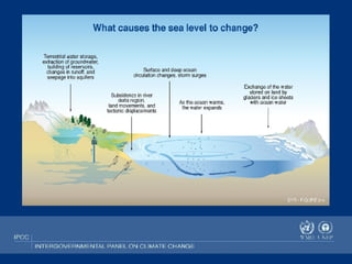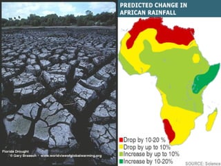 Global warming is caused by increased levels of carbon dioxide and other greenhouse gases in the atmosphere from human activities like burning fossil fuels. The effects of global warming include rising sea levels that threaten coastal areas like Blackwater National Wildlife Refuge in Maryland, as well as more frequent and intense extreme weather events. Solutions to address global warming involve transitioning to renewable energy sources like geothermal energy and reducing greenhouse gas emissions through individual and policy actions.