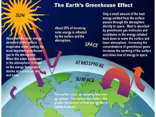 Global warming is defined as the rise in temperature of the earth caused by an increase in greenhouse gases such as carbon dioxide, CFCs, ozone, methane and nitrous oxide in the atmosphere. Some causes of global warming include industrialization, urbanization, atmospheric pollution and an influx of greenhouse gases. Impacts of global warming include increasing temperatures on land and sea, melting of polar ice and snow, sea level rise, loss of organisms and biodiversity, floods and droughts, increased ocean temperatures, and shifting life zones towards polar regions. Recommended actions to reduce global warming include using less plastic and fossil fuels, afforestation, and reducing air conditioner, refrigerator and CFC usage.