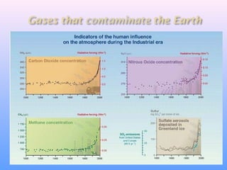 Global warming is caused by greenhouse gases like carbon dioxide and methane trapping heat from the sun in the Earth's atmosphere, causing the planet to get hotter each year. These greenhouse gases are emitted through human activities such as using cars, aerosols, and home appliances. A warming climate will increase the frequency and severity of extreme weather events like floods, tornadoes, and earthquakes. Some ways to help address global warming include using less aerosols, driving electric cars, upgrading home heating systems and windows, recycling, and reducing car usage. Continuing harmful human activities risks making the effects of climate change even worse.