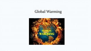 Global warming is caused by increasing levels of carbon dioxide and other air pollutants in the atmosphere from the burning of fossil fuels and deforestation, trapping heat and warming the planet. The effects of global warming include melting polar ice caps and rising sea levels, new pests and heat waves damaging forests and farms, dying coral reefs and extinction of animal species, and increased allergies and diseases. Some ways to reduce global warming are using energy efficient electronics, solar energy instead of fossil fuels, tree planting, species preservation, and recycling waste.