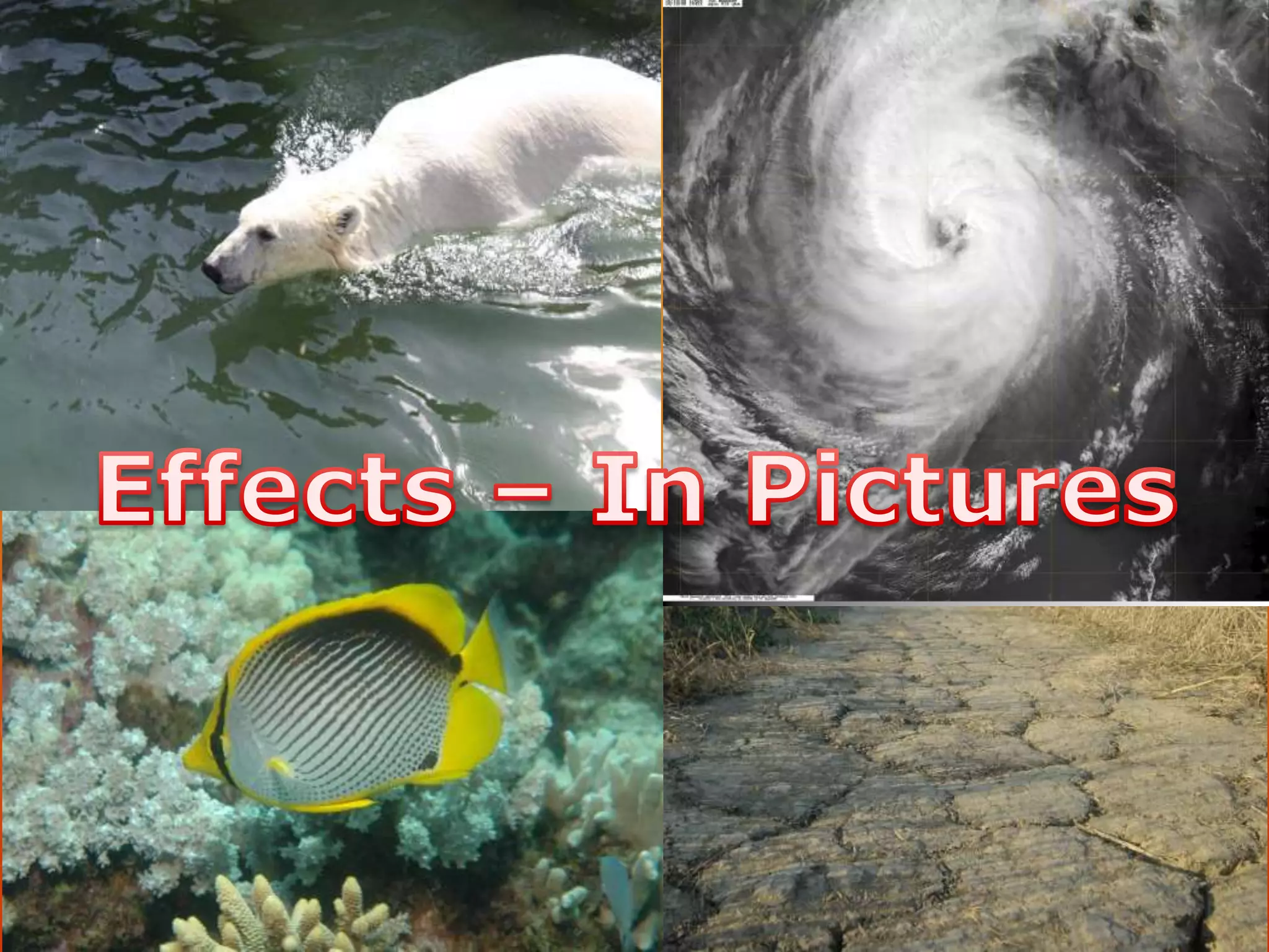 - Effects of global warming include rising sea levels worldwide, more severe storms, massive crop failures, widespread species extinction, and disappearance of coral reefs.