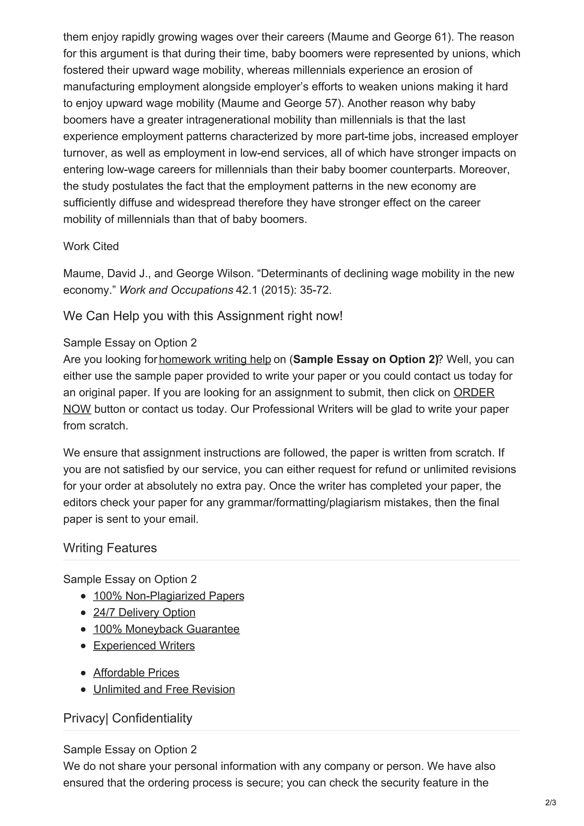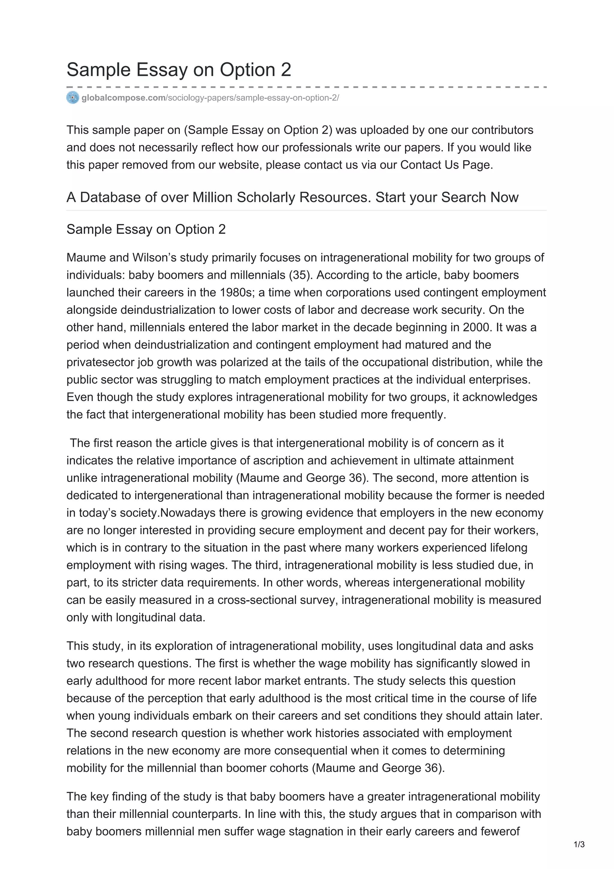 This document summarizes a study that compares intragenerational wage mobility between Baby Boomers and Millennials. The study finds that Baby Boomers experienced greater wage growth and mobility over their careers compared to Millennials. This is attributed to factors such as stronger union representation and more stable manufacturing jobs when Boomers were entering the workforce. In contrast, Millennials faced higher rates of part-time work, job turnover, and employment in low-wage service work, which negatively impacted their early career wages and long-term mobility.