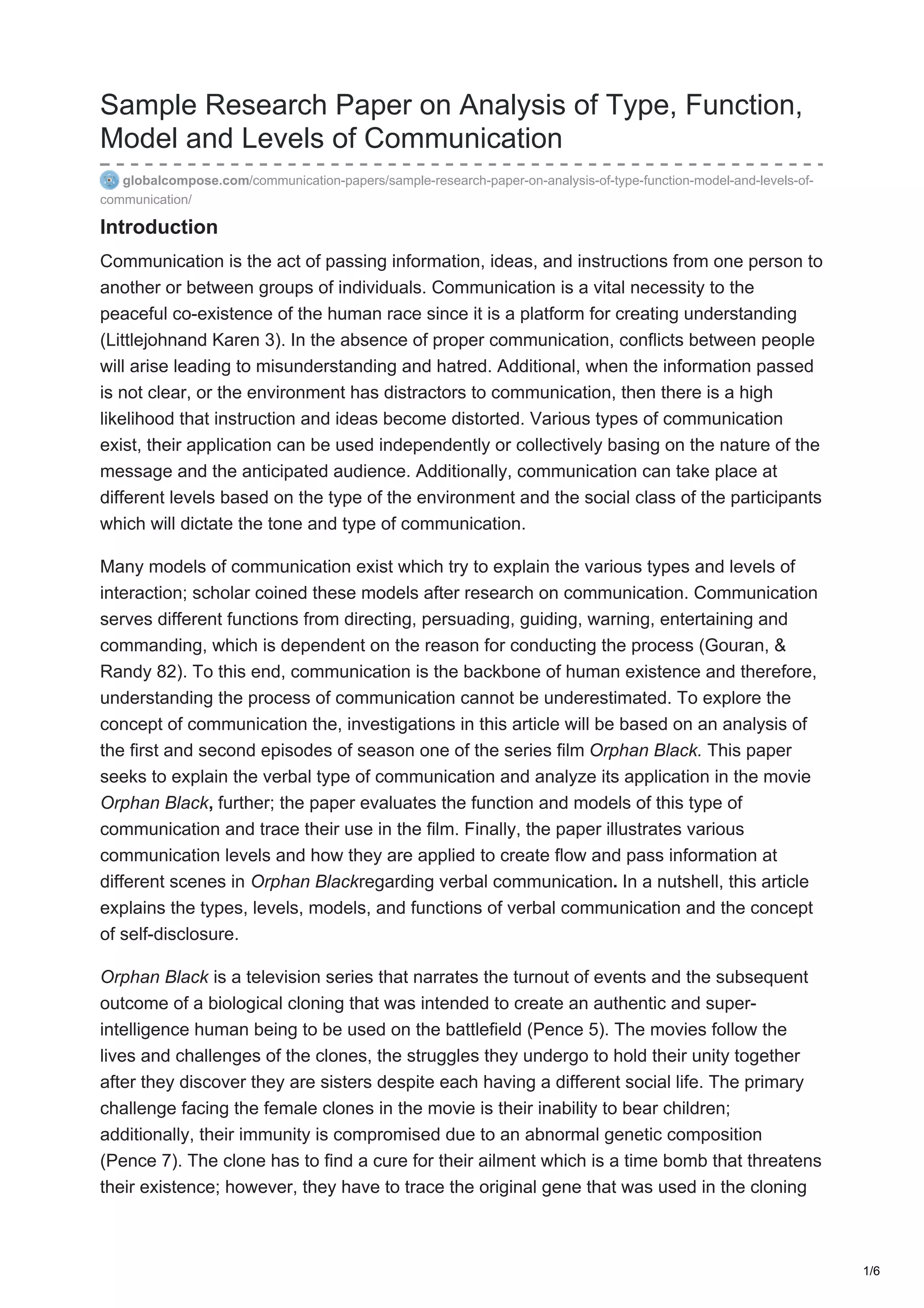 globalcompose.com/communication-papers/sample-research-paper-on-analysis-of-type-function-model-and-levels-of-