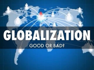 Ang dokumento ay tungkol sa globalisasyon bilang isang proseso na nagiging pandaigdig ang mga lokal na gawi. Tinalakay ang mga positibo at negatibong epekto ng globalisasyon sa mga komunidad at bansa.