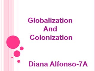 Globalization involves the integration of economic, political, and cultural systems across countries through shared policies and negotiation, while colonization is the process where one country gains control over another through force without negotiation and imposes its ideas. Both globalization and colonization result in the exploitation of labor and resources in developing countries by more powerful economic entities.