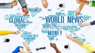 Globalization refers to the growing interdependence and integration of economies, societies, and cultures around the world through cross-border trade and investments as well as information flows. The document discusses several dimensions and aspects of globalization including its effects on culture, society, politics, economy and technology. It also examines the positive and negative impacts of globalization on issues like employment, prices, environment and terrorism. Several statistics based on surveys about people's perceptions of globalization are presented. The roles of multinational corporations and economic globalization are analyzed. The impact of globalization on India including its effects on the Indian economy is discussed. The interrelation between globalization and the internet/world wide web and their effects on business and mass media