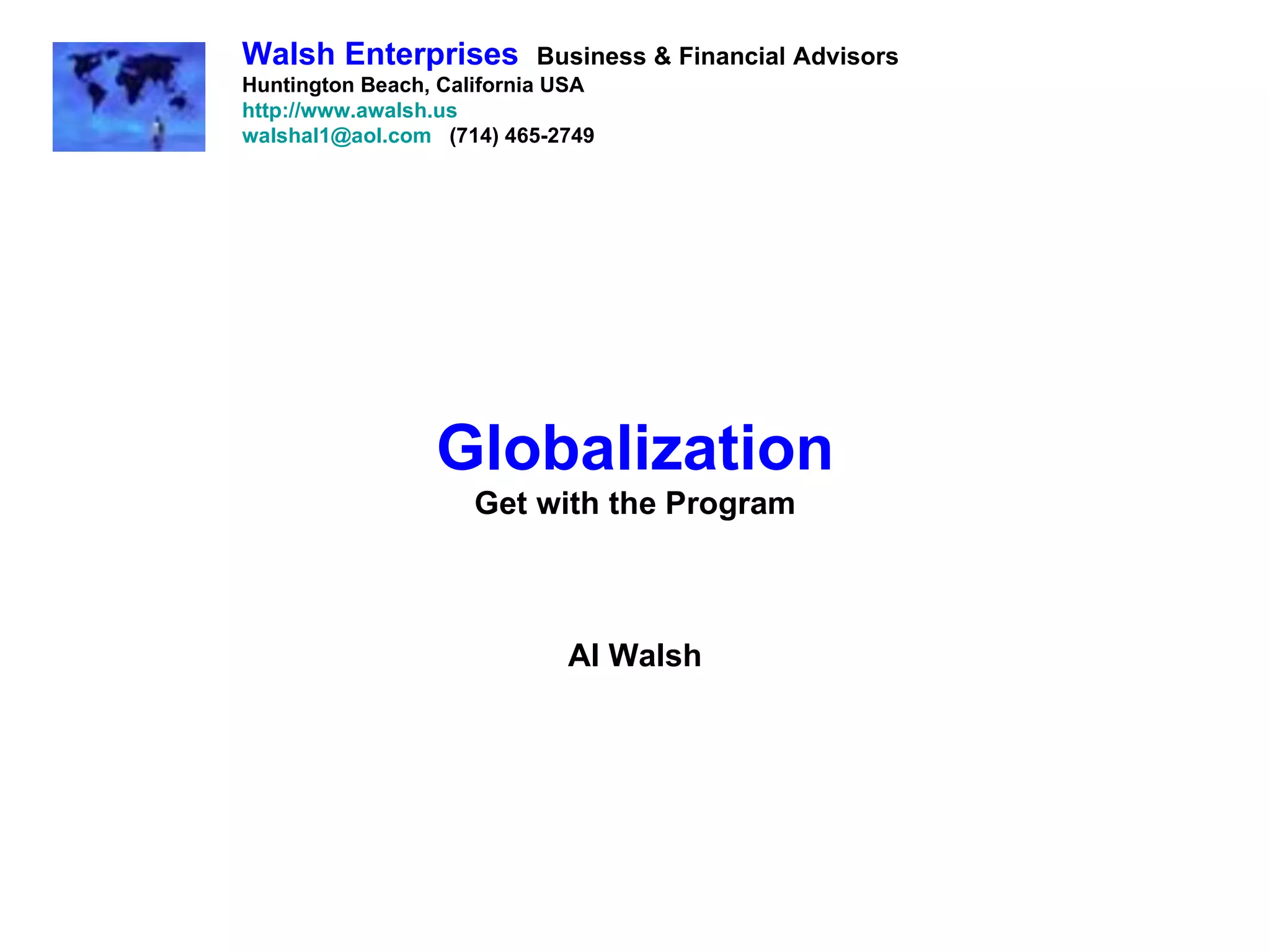 Globalization is happening rapidly and interconnects all human activities around the world. The world has changed significantly in recent decades as communication and business have become increasingly global. Now anyone can use the internet and mobile phones to connect and do business with people worldwide. To take advantage of opportunities in the current global environment, people need to embrace and participate in globalization rather than ignoring or resisting the changes that are occurring all around them.