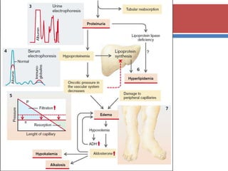 The document provides a comprehensive overview of glomerulonephritis (GN), detailing its structure, types, etiology, clinical features, diagnosis, and treatment options. GN is primarily an inflammatory condition affecting the glomeruli, leading to various symptoms such as hematuria, hypertension, and proteinuria. The text also discusses the complications and preventive measures associated with GN, emphasizing the importance of early diagnosis and appropriate treatment to prevent progression to chronic kidney disease.