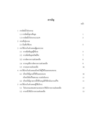 สารบัญ หน้า 1 การติดตั้งโปรแกรม 1.1 การติดตั้งฐานข้อมูล 1.2
