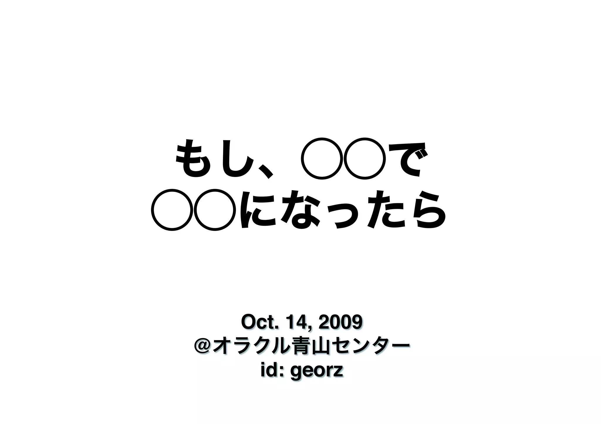 http://genesislightningtalks.com/index.php?Events%2F2009%2F10 http://www.youtube.com/watch?v=xdju2HchAFA