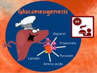 Gluconeogenesis is a metabolic process primarily occurring in the liver and kidneys, converting non-carbohydrate substrates into glucose 6-phosphate and ultimately free glucose or glycogen. This pathway consists of several enzymatic reactions that bypass three irreversible steps of glycolysis using specific enzymes, including pyruvate carboxylase and fructose-1,6-bisphosphatase. It plays a crucial role in maintaining blood glucose levels, particularly during fasting, as its failure can lead to severe neurological complications.