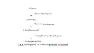 1. Gluconic acid is produced through the oxidation of glucose using enzymes from fungi like Aspergillus niger or bacteria.