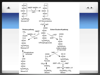 1. Central pathways like glycolysis, the Entner-Doudoroff pathway, and the pentose phosphate cycle.
