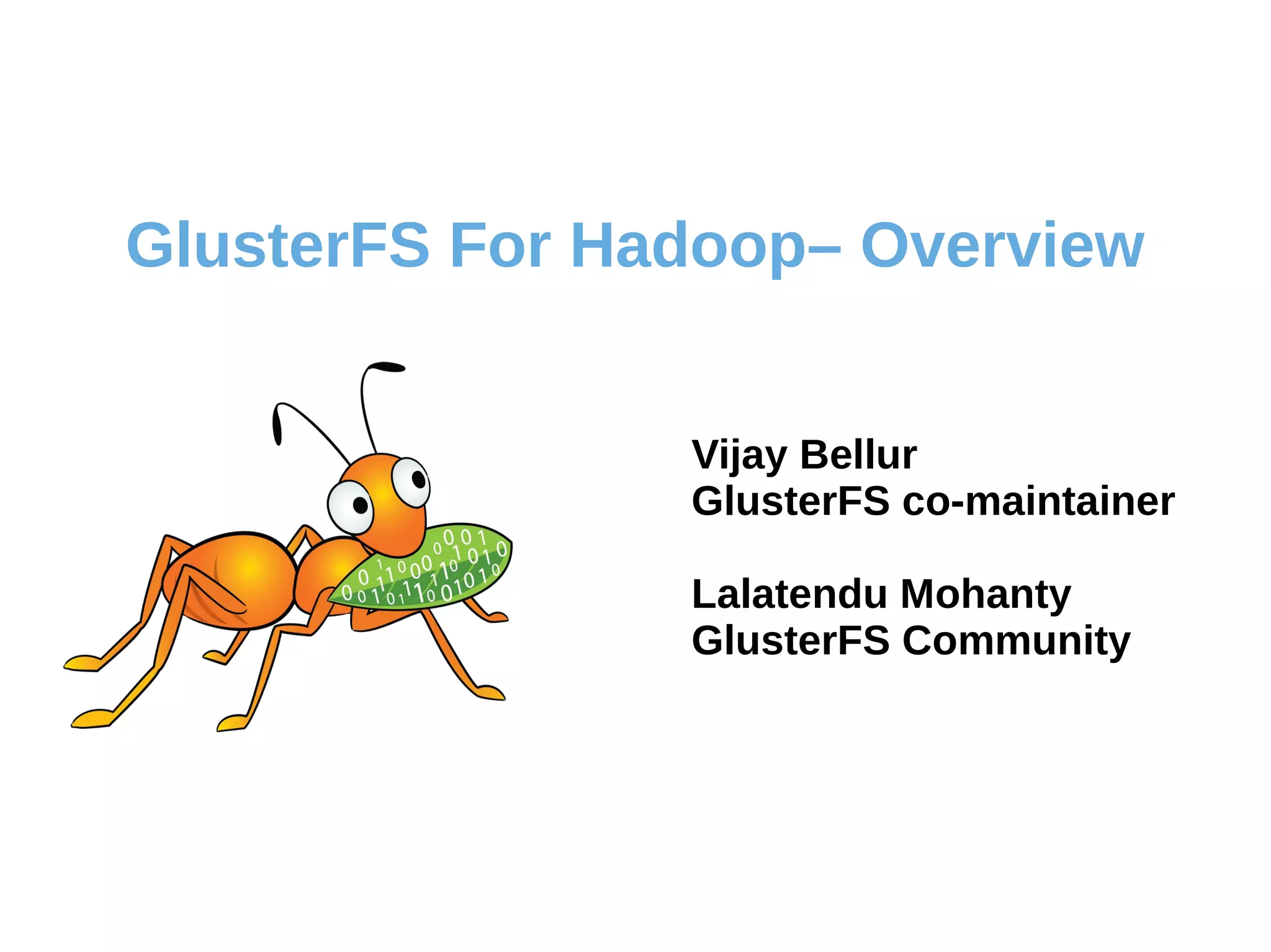 This document discusses using GlusterFS for Hadoop. GlusterFS is an open-source distributed file system that aggregates storage and provides a unified namespace. It can be used as the storage layer for Hadoop, replacing HDFS. Using GlusterFS provides advantages like a POSIX-compliant file system, ability to use the same storage for MapReduce and application data, and features like geo-replication and erasure coding. GlusterFS also integrates with projects like Apache Spark, Ambari, and OpenStack.